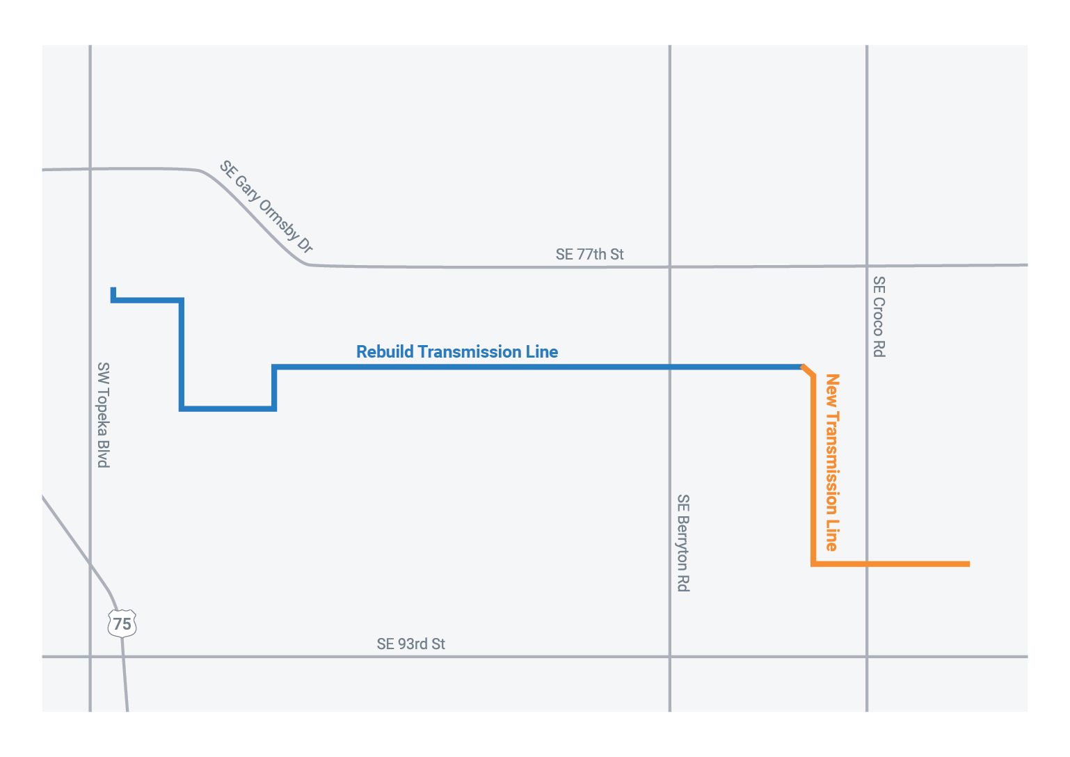 - 345kV Transmission Line Upgrade: Waverly Substation (95th Street and Waverly Road) to Clearview Substation (a new build at 95th Street and Sunflower Road).
