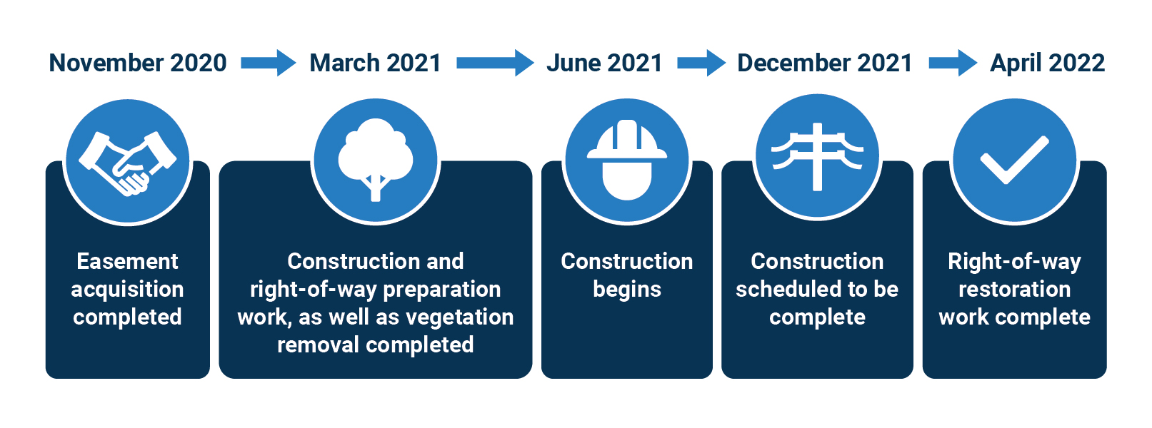 The project representative will share information regarding the project. During the acquisition process, the project representative will work with property owners, discuss proposed easement locations, rights, compensation, construction requirements, potential access routes, land restoration, post-construction and damage settlements. We will work with landowners throughout the siting, design and construction process to minimize impacts to their properties. It is our goal to reach negotiated agreements with all landowners.