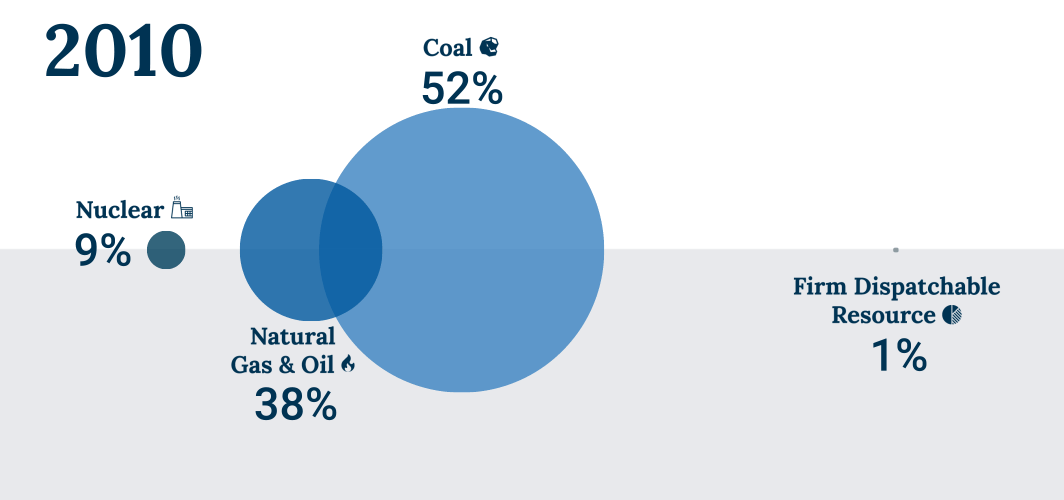 In short, a diverse energy mix allows our system to adapt so you don't have to (getting electricity where and when you need it at an affordable price). See a short timeline below of our energy mix progression over the years with our plan to become net zero by 2045*: