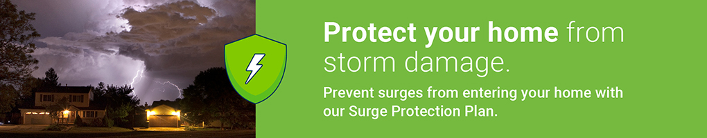 - A licensed electrician installs a professional-grade surge protection device on the meter outside your home (free)